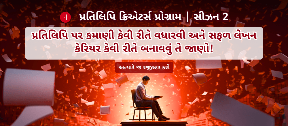 આ પ્રતિલિપિ ક્રિએટર્સ પ્રોગ્રામમાં ભાગ લઈને હજારો લેખકોએ સફળ રીતે પ્રતિલિપિ પર કમાણી શરુ કરી છે, તમે પણ અવશ્ય ભાગ લેશો. ઉપરાંત તમારા લેખક મિત્રોને આ વિશે જાણકારી શેર કરશો. તમારી લેખન યાત્રાને આગલા સ્તર પર લઈ જાઓ!